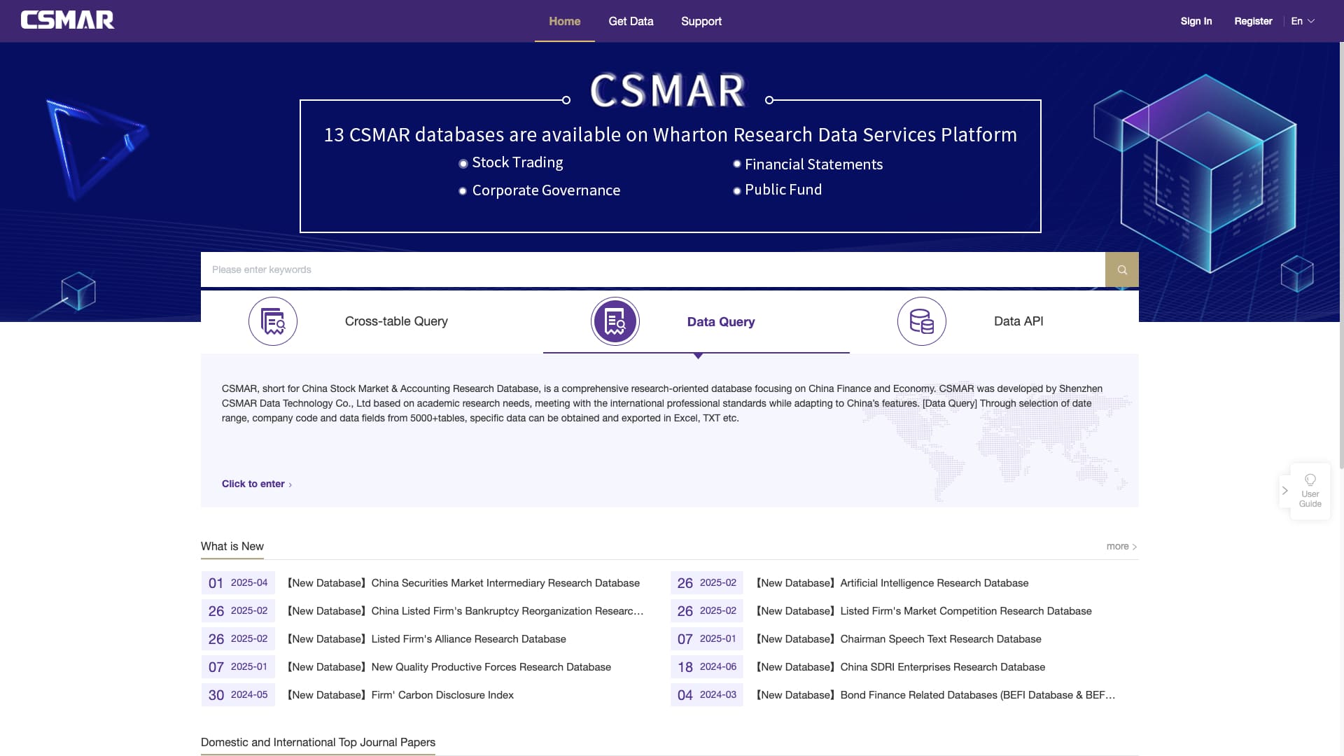 The CSMAR Database is a professional platform offering comprehensive financial market and economic research data in China.