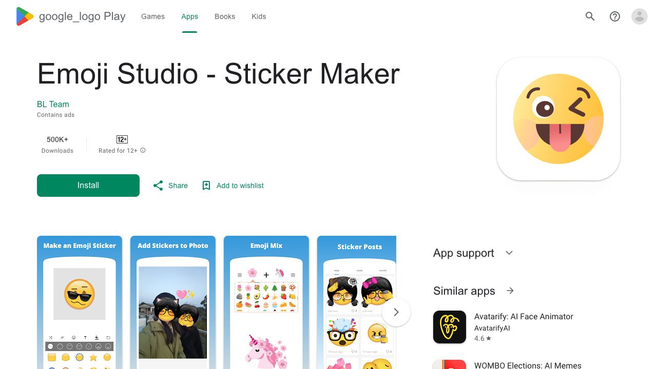 Emoji Studio allows users to create funny emoji stickers or add different styles of emojis to their photos. It features a DIY emoji maker for personalized emoji packs, enabling users to split emoji elements, combine them, and generate high-definition images. The built-in editor offers a massive selection of emojis, various styles, custom stickers, filters, graffiti, and text addition.