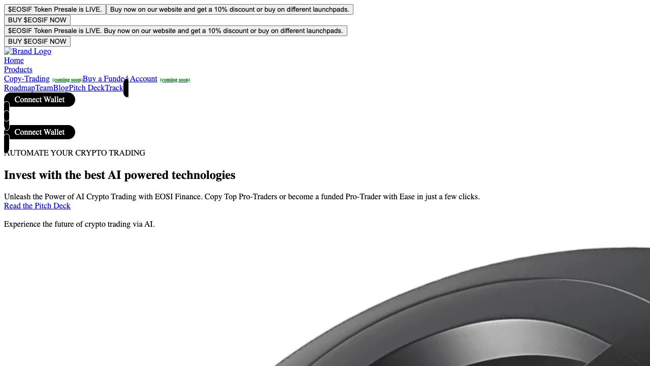 Eosi Finance is a web3 platform that allows users to copy-trade AI-aided Pro-traders in the crypto market. It aims to maximize profits and prepare users for bull runs by unlocking the potential of web3 Prop firms. The platform offers automated crypto trading and investing using AI-powered technologies, enabling users to copy top pro-traders with ease.