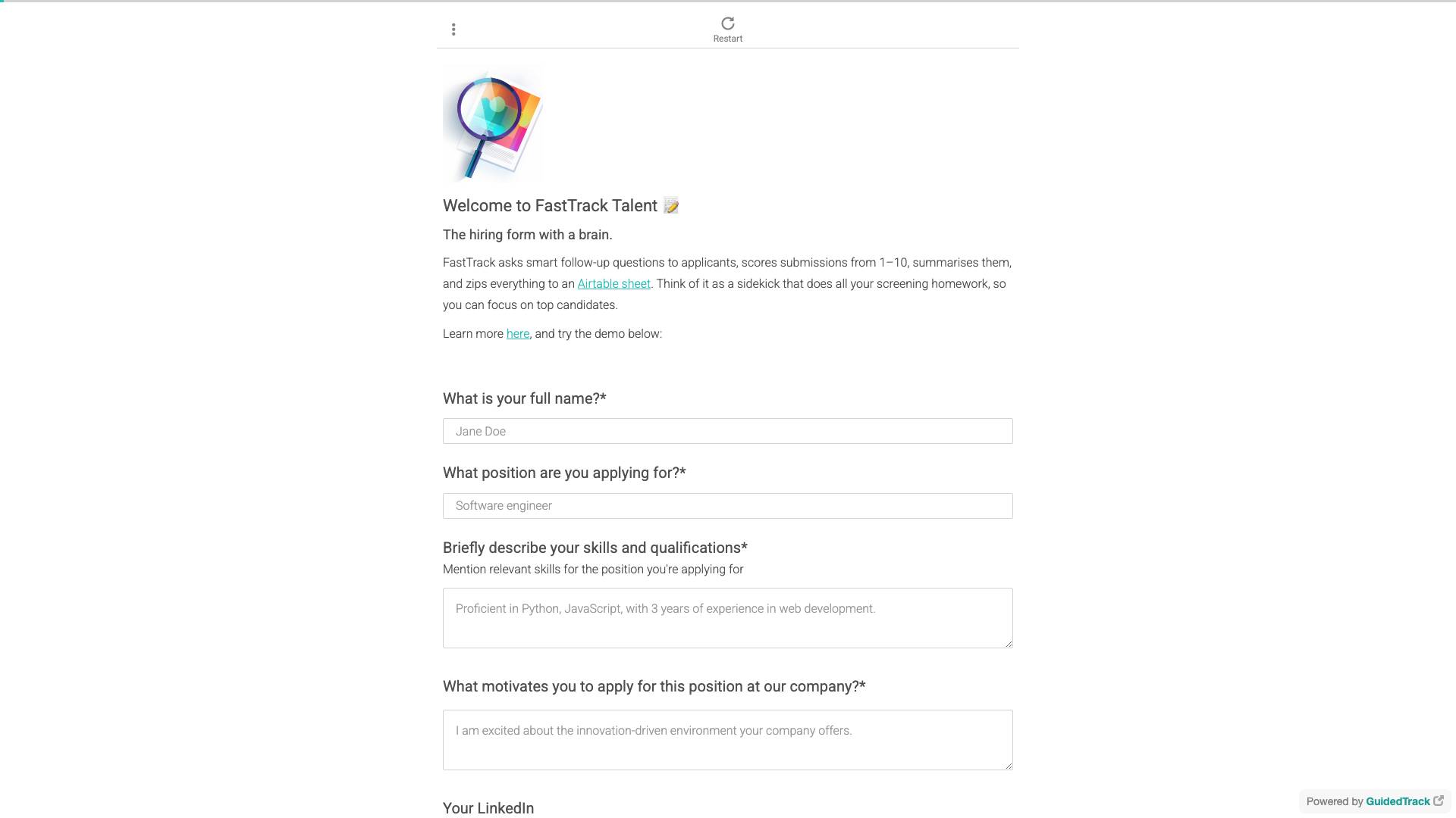 AI form that questions & rates candidates — Save time hiring
