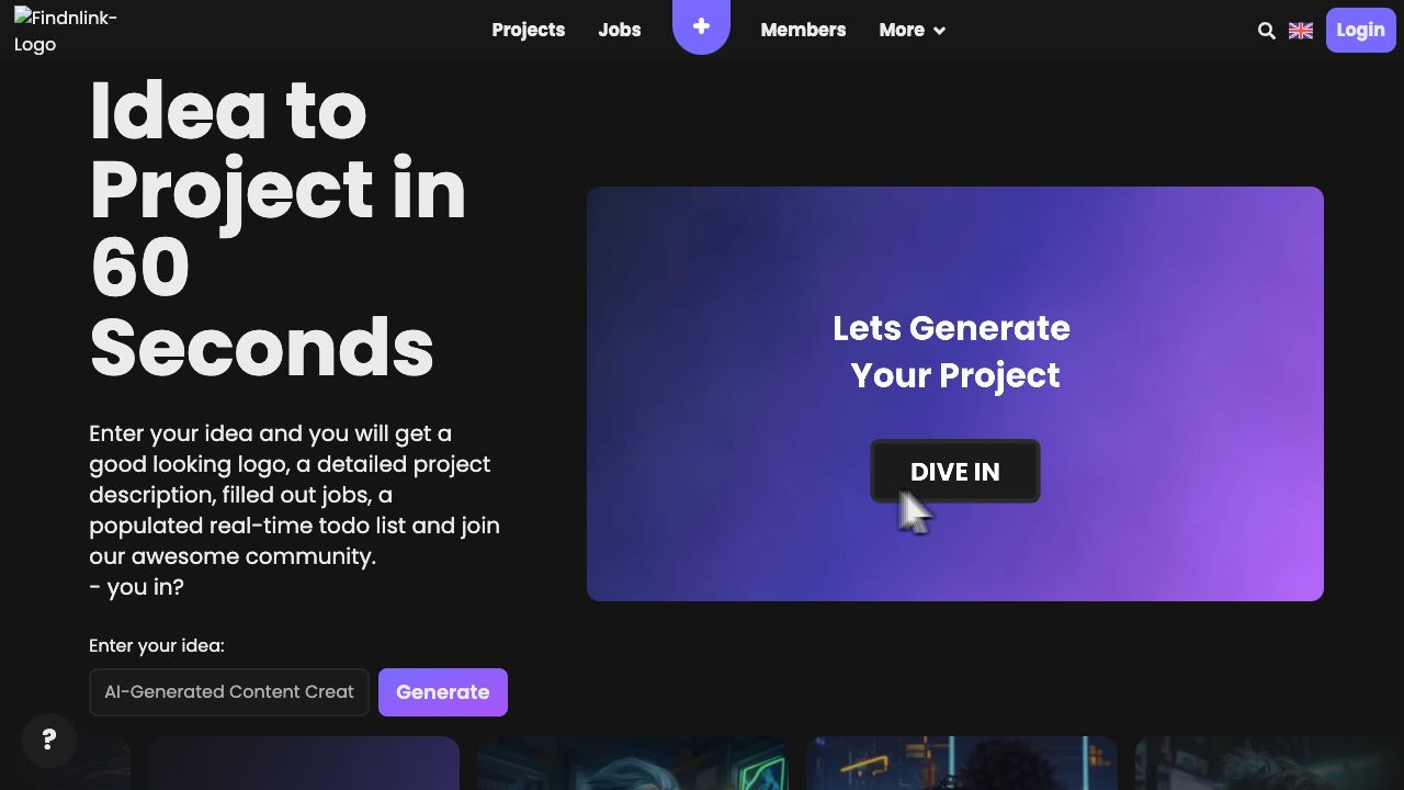 Enter your idea on the Findnlink website, and the AI will generate a logo, project description, job postings, and a Kanban board. You can then connect with other users to collaborate on the project.