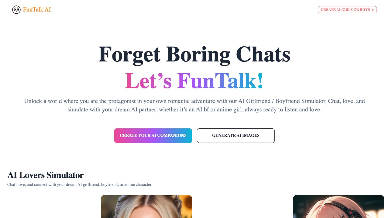 FunTalk AI is an innovative AI girlfriend love game that lets users pacify their upset girlfriends. It offers a diverse selection of girlfriends from different countries, personalities, and aesthetics, providing a personalized experience. It also offers AI boyfriend simulators and character AI alternatives for free roleplay and fun.
