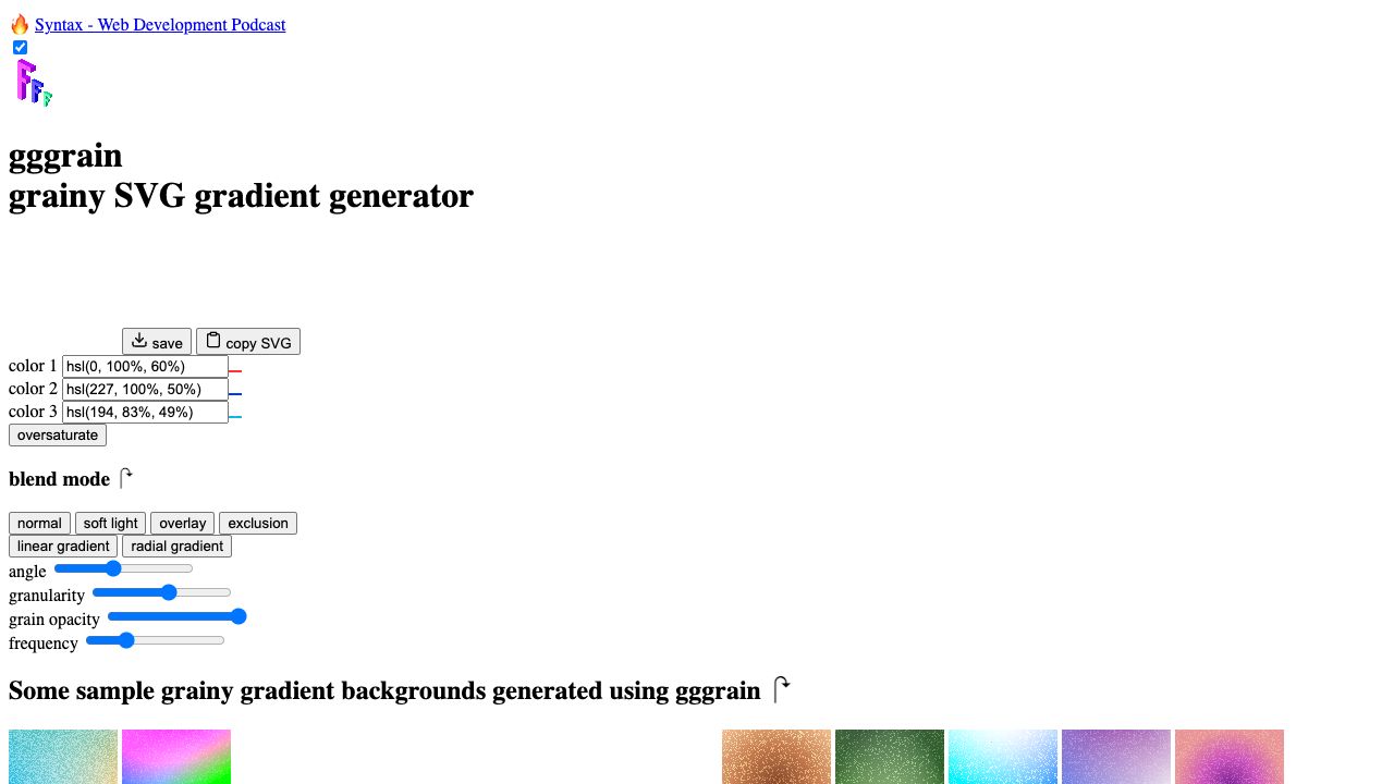 Generate beautiful grainy gradients and export them as SVG files to add a different kind of gradient to your designs.