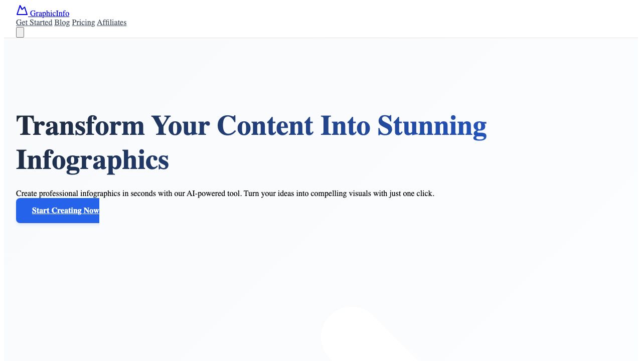 GraphicInfo is an AI-powered infographic generator that transforms text into compelling visuals. It allows users to create professional infographics in seconds with just one click. Key features include instant visuals, engaging content generation, precise editing, real-time online search, and a creative mode for AI-driven dynamic element generation.