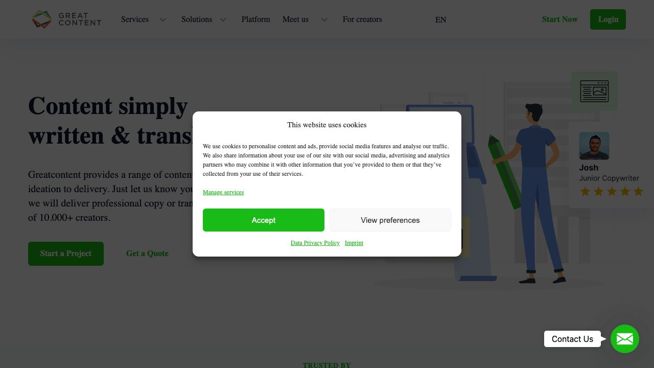 greatcontent is a platform that offers technology for human and AI-based content creation, selected linguistic freelancers, and industry knowledge in 30+ languages. It provides a range of content services from ideation to delivery, including writing, translation, and managed services. The platform caters to various industries such as e-commerce, marketing, SEO, agencies, blogging, website relaunch, newsletter creation, banking & finance, fashion, food, gambling & casino, mobility, and travel.
