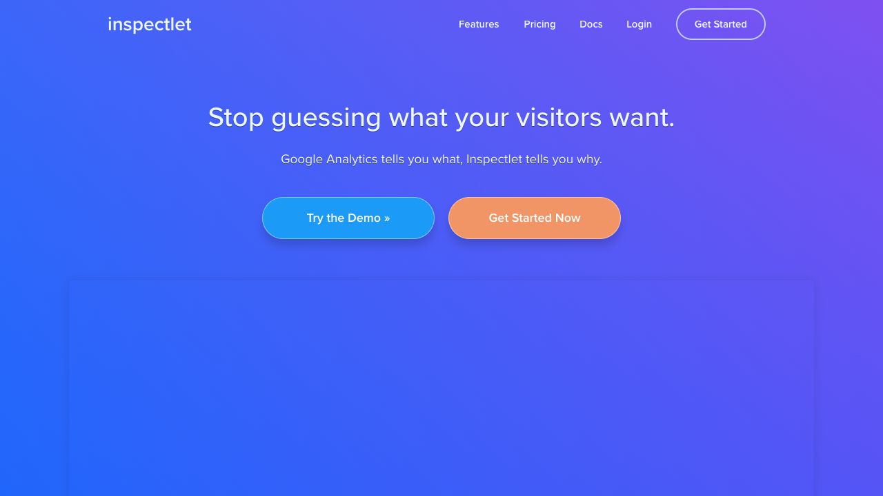 Inspectlet records videos of your visitors as they use your site, allowing you to see everything they do. See every mouse movement, scroll, click, and keypress on your site. Forget traditional analytics. You never need to wonder how exactly people are using your site again.