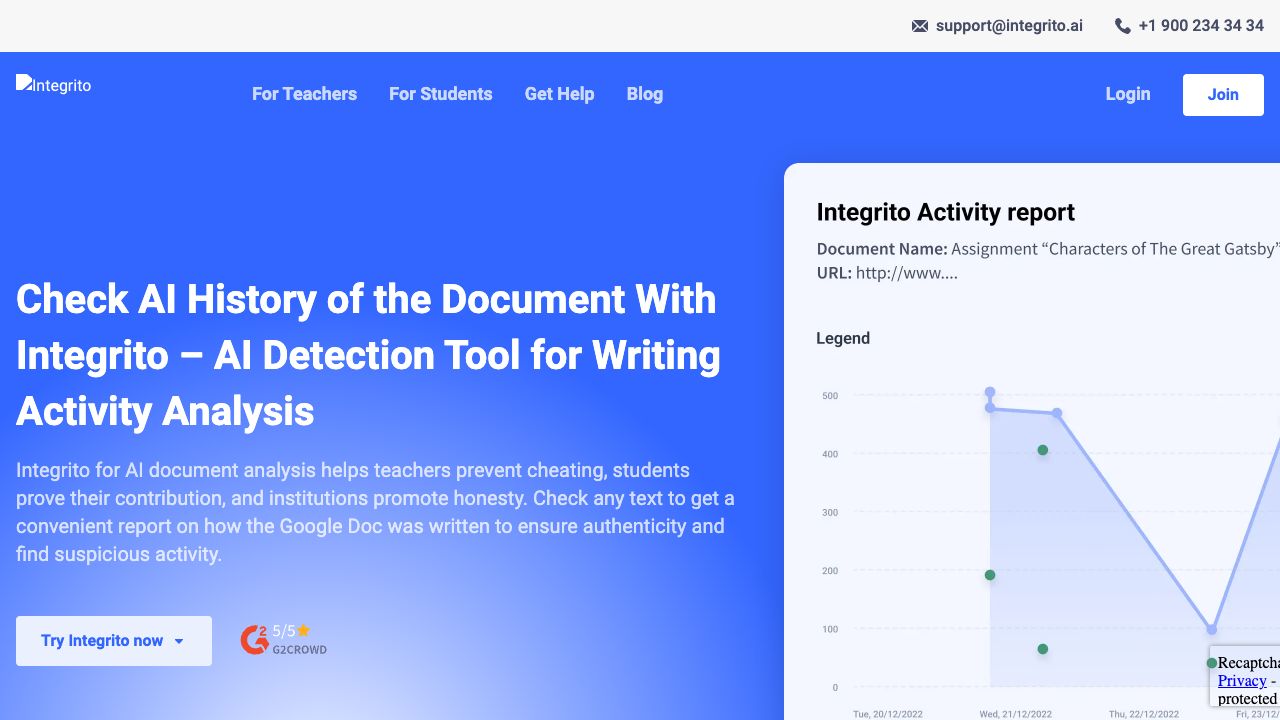 Integrito Activity Report eliminates AI detectors' downsides and provides the most accurate way to prove originality and authenticity of your texts. It offers a writing history report to catch any cheating attempt including plagiarism, AI, and even ghost-writing. Integrito helps teachers prevent cheating, students prove their contribution, and institutions promote honesty by analyzing how a Google Doc was written to ensure authenticity and find suspicious activity.