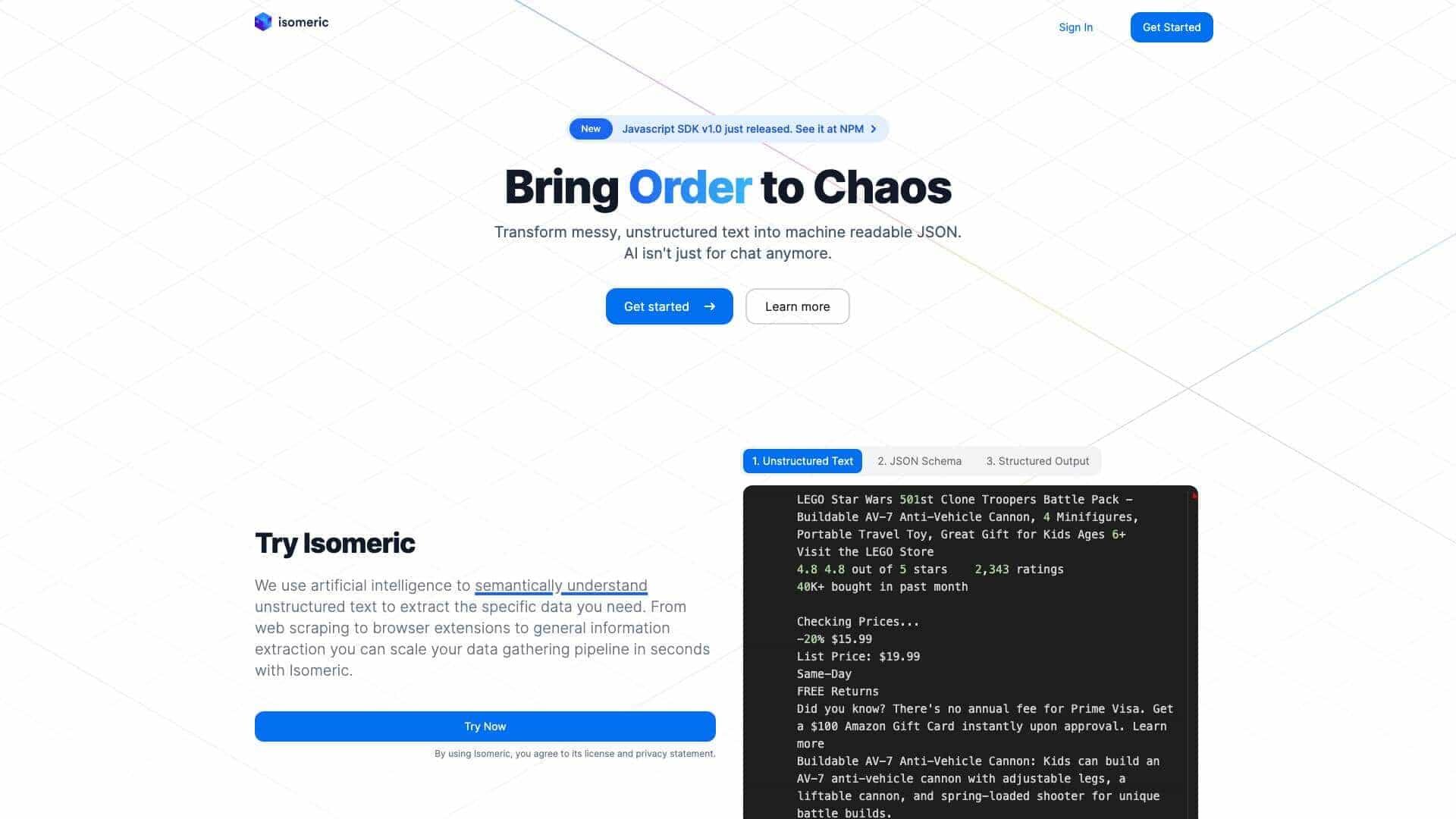 Isomeric is an API service that utilizes advanced AI to transform unstructured website text into structured JSON.