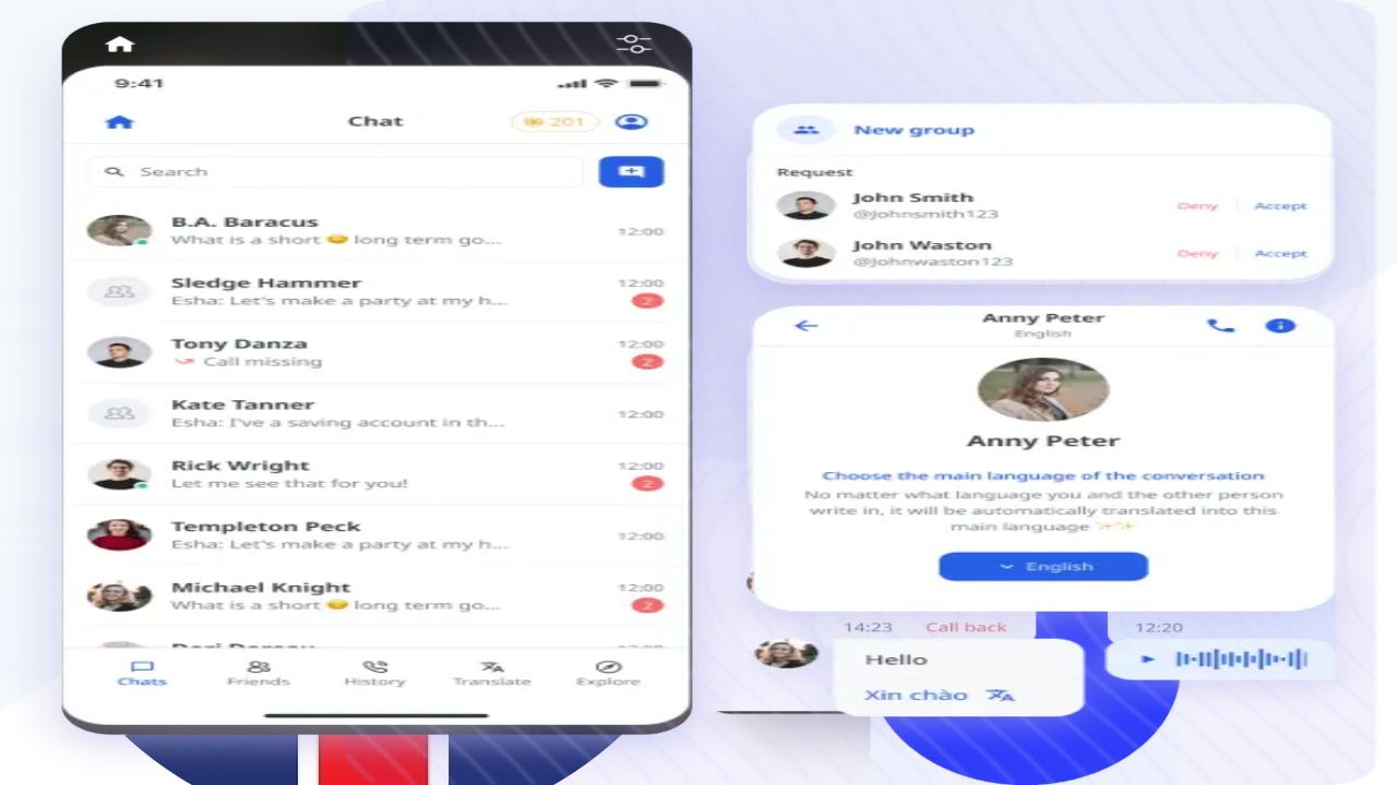 Use izTalk for real-time voice translation during calls by dialing a number or choosing a contact. The app automatically translates messages in chats based on your settings. You can also create an AI clone of your voice for a personalized translation experience.