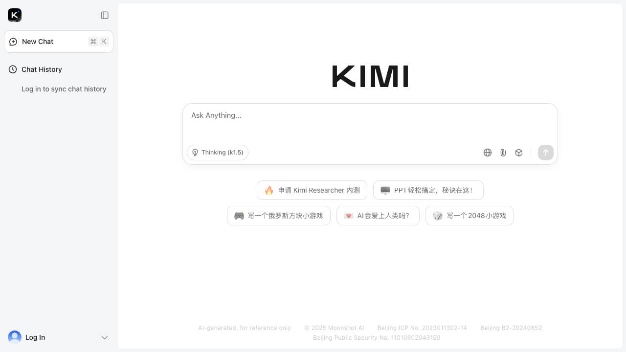 Ask Kimi any question to solve your problems. You can start a new conversation by clicking '新建会话 Ctrl K'.