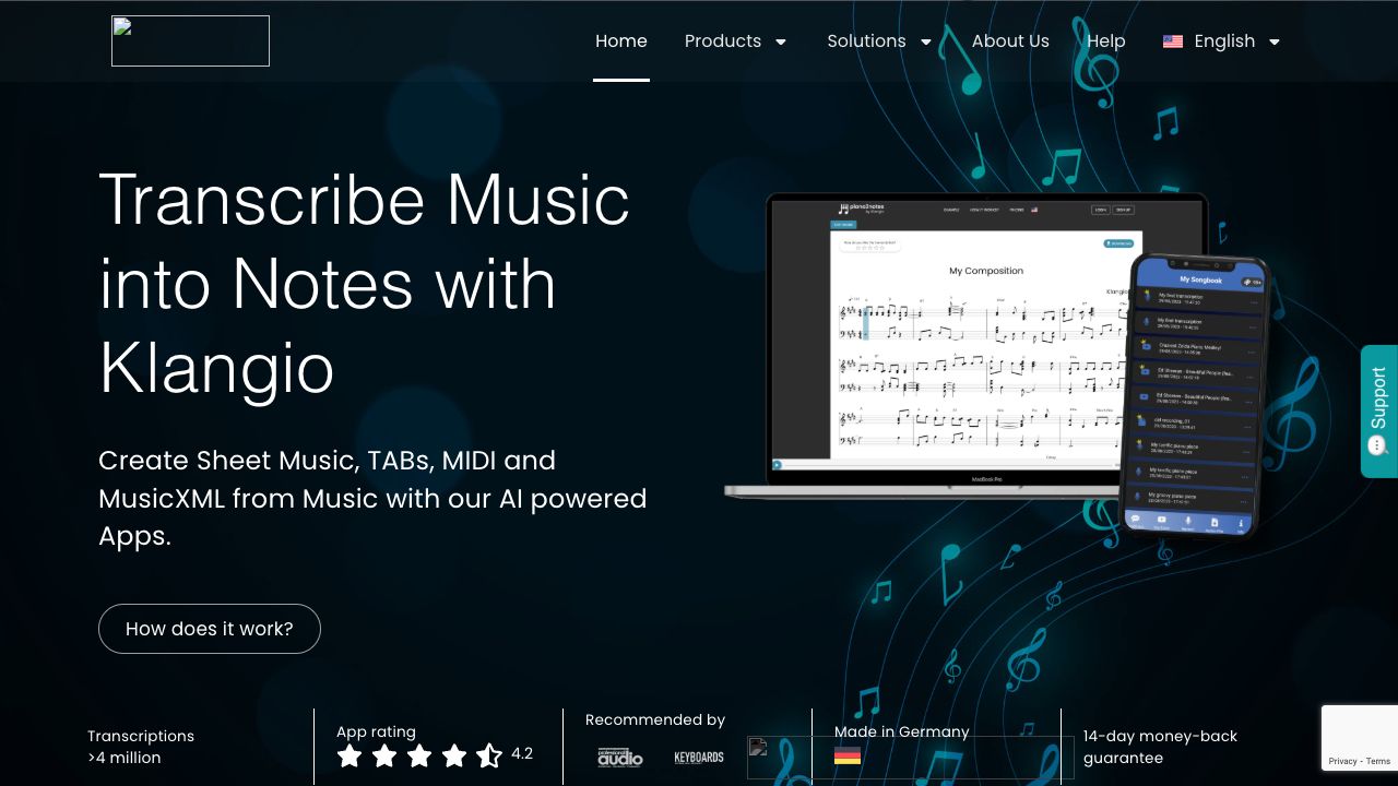 Klangio AI is a suite of AI-powered software tools designed to transcribe music into notes. It allows users to transcribe audio and YouTube videos into sheet music, MIDI, and MusicXML formats. The platform offers various apps tailored for different instruments and purposes, such as Piano2Notes, Guitar2Tabs, Drum2Notes, Sing2Notes, Scan2Notes, and Melody Scanner.