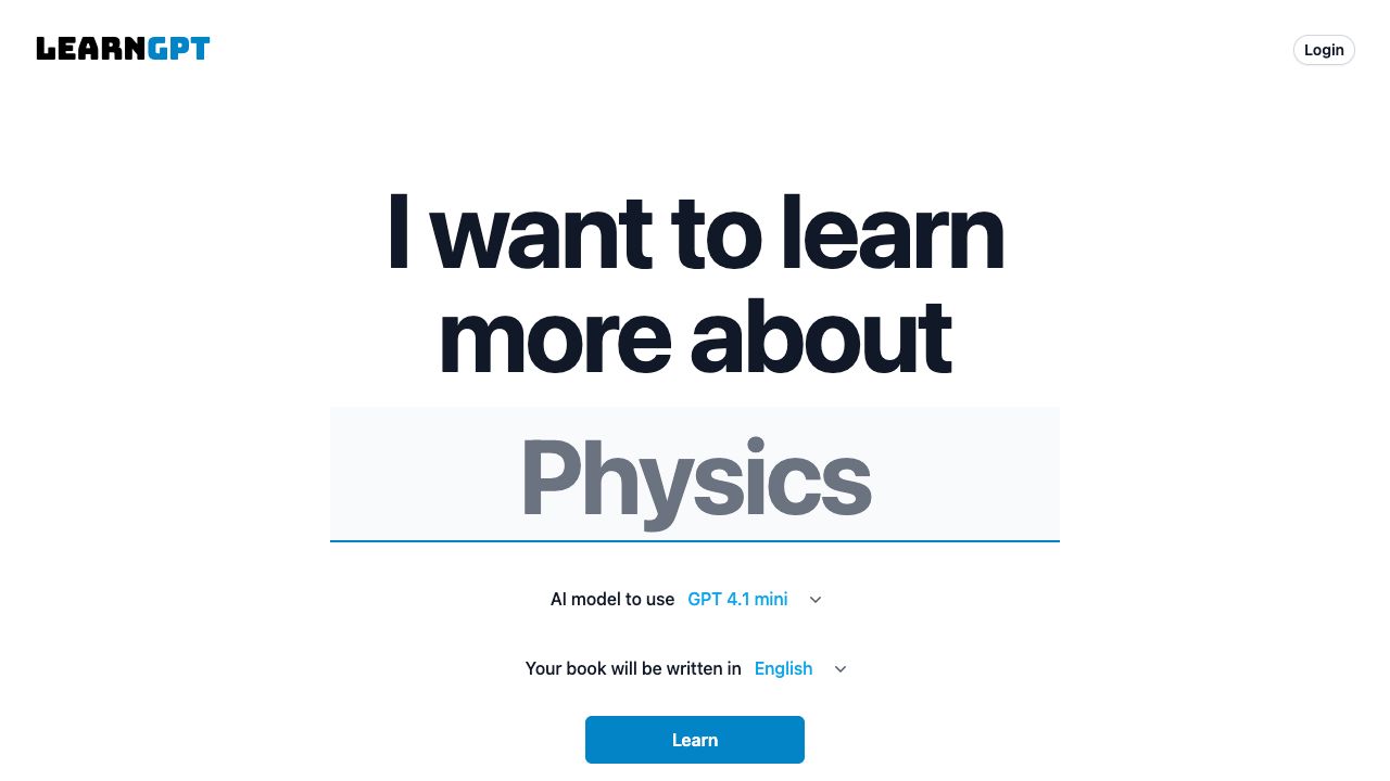 LearnGPT uses AI to generate complete books with chapters covering a vast range of topics, providing a seamless and effortless way to learn about anything.