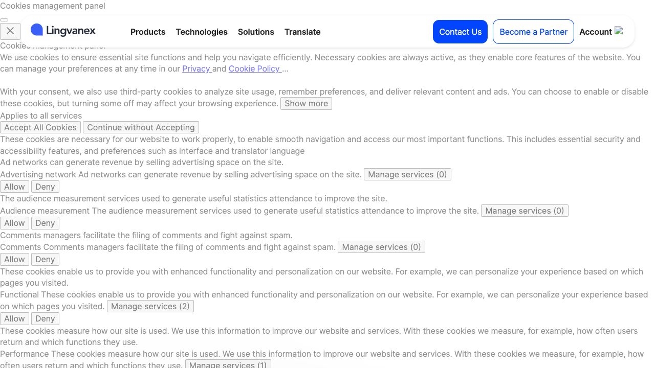 Lingvanex offers various products and solutions. You can use their online translation tools, integrate their APIs into your applications, or install their on-premise software for secure and private translation. Choose the product that best fits your needs, whether it's translating text, documents, audio, or images.