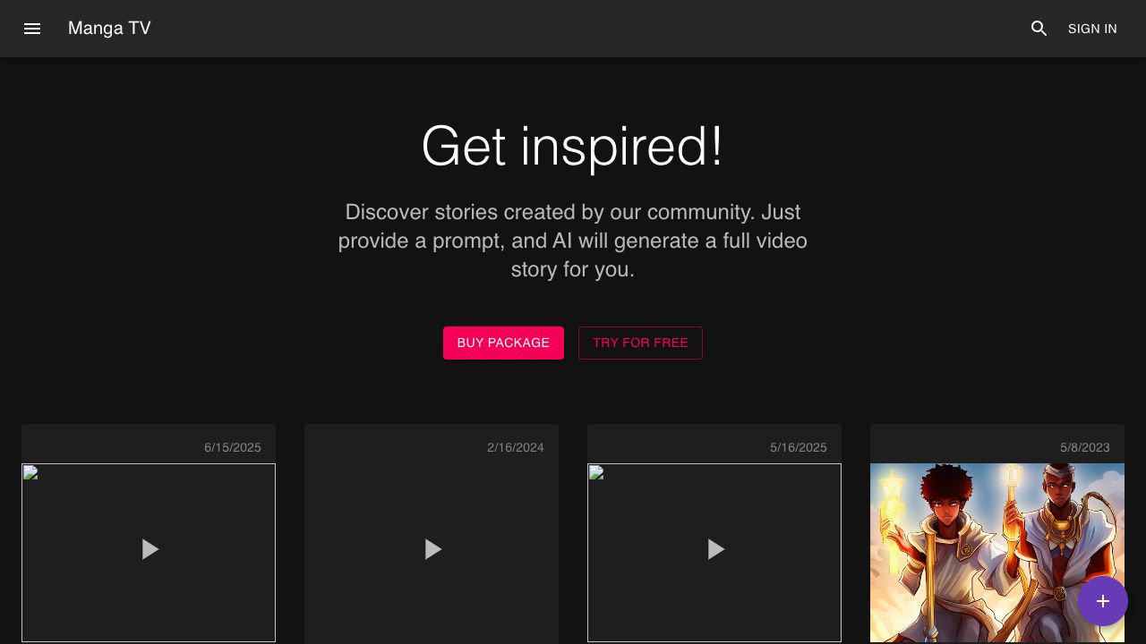 Provide a single prompt to Manga TV, and the AI will automatically generate a full video story, including visuals, sound, music, and customizable styles.