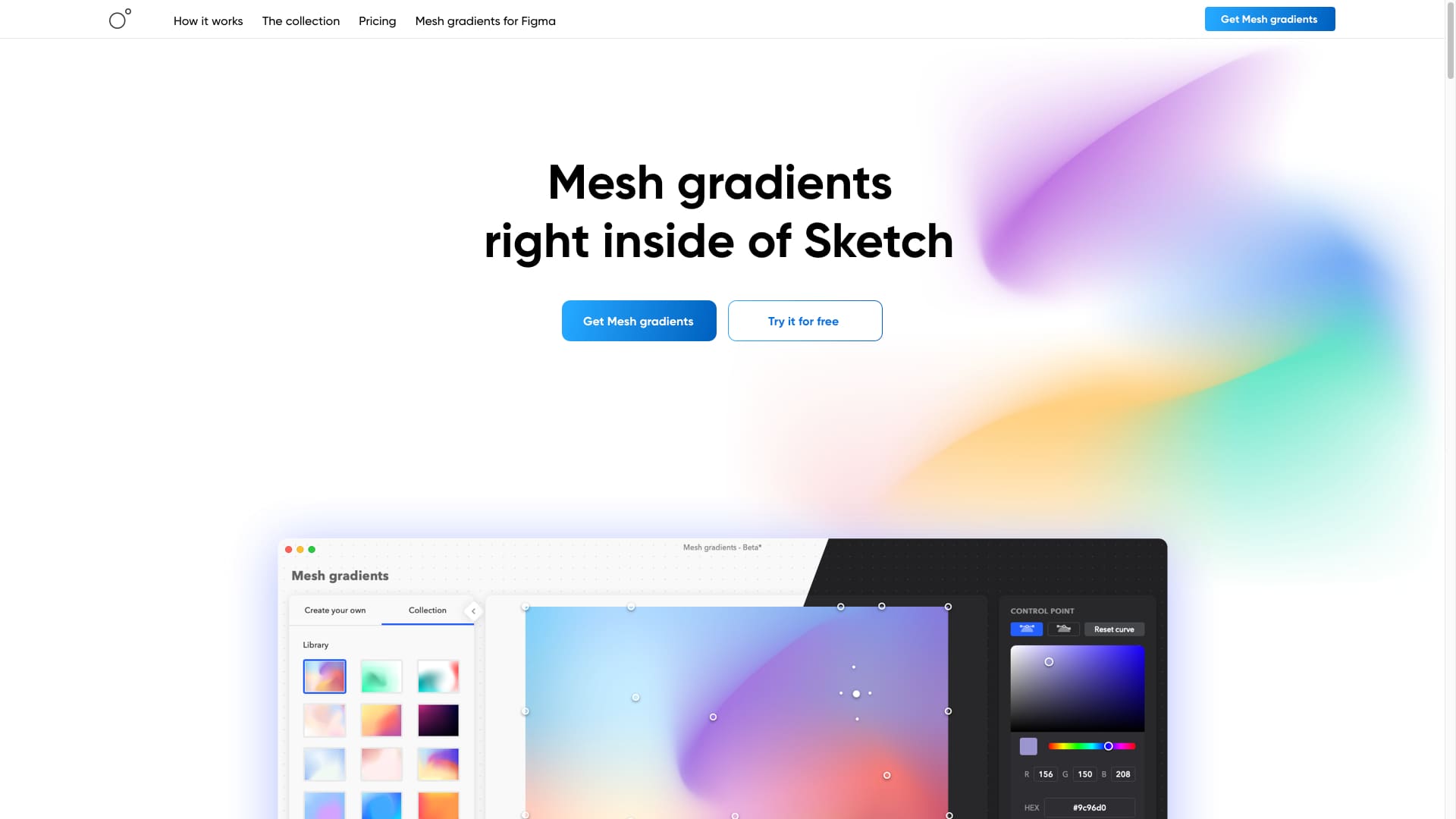 Mesh Gradients Plugin 是一个 Sketch 插件,用户可以通过它方便地创建漂亮的渐变色。网站还提供了多种渐变模式和调色板供用户选择。