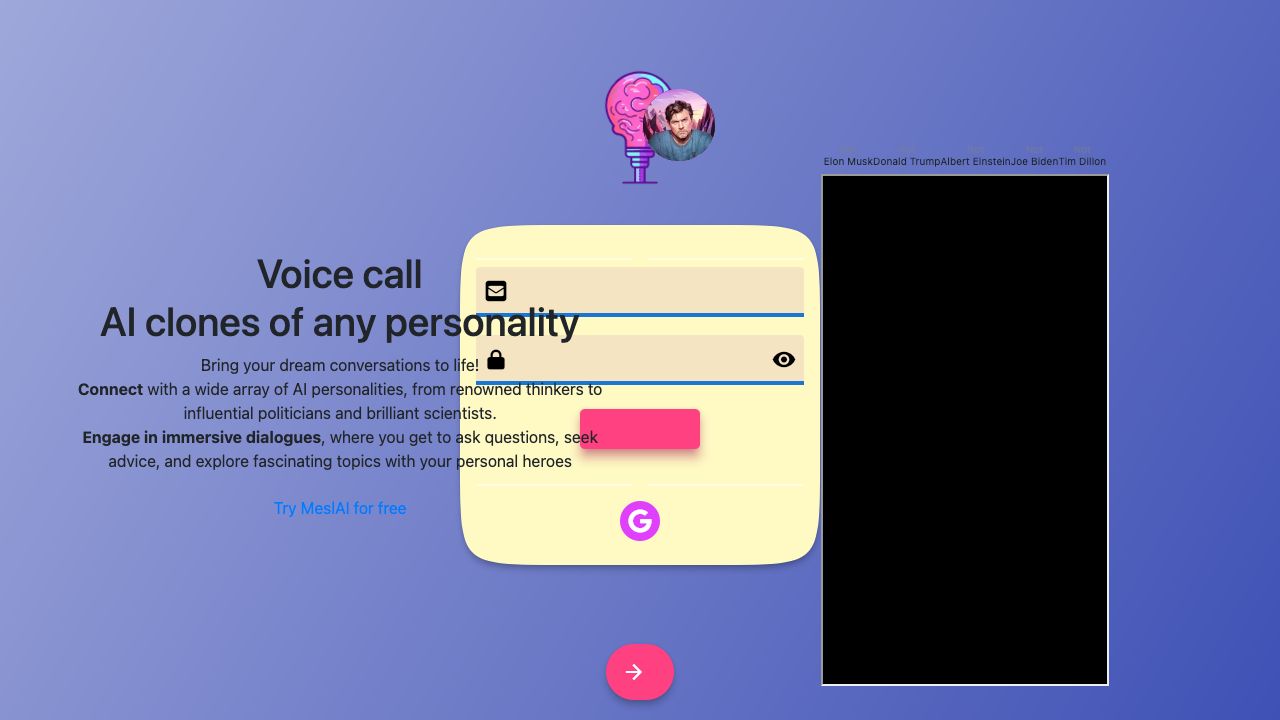MeslAI is a platform that allows users to voice chat with AI clones of famous figures. It offers realistic voices and interactive conversations, suitable for entertainment, learning, and motivation. Users can talk with AI personalities, including thinkers, politicians, and scientists, exploring various topics.