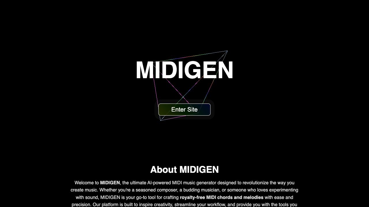 MIDIGEN is a royalty-free AI MIDI melody generator that allows users to create endless unique chords and melodies. Users can select their desired scale, key, number of bars, and tempo to generate MIDI files. It offers a variety of scales, keys, and other parameters to customize the generated music.