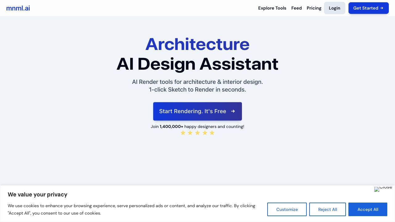 mnml.ai is an AI rendering platform designed to assist architects and interior designers in optimizing their workflow. It generates renders and redesign options for exterior and interior designs in seconds, using input from popular modeling software or even freehand sketches.