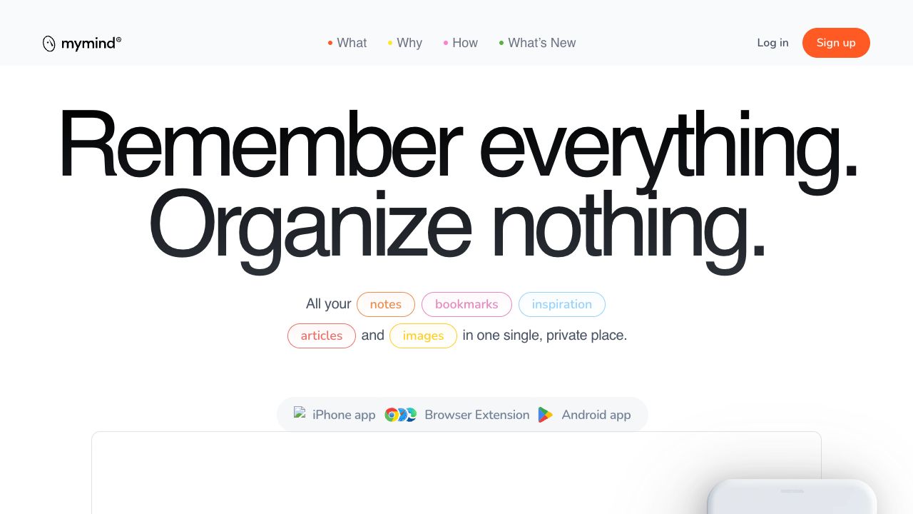 mymind is a private digital space designed to help users save and remember various types of content, including images, links, notes, videos, quotes, PDFs, and articles, from the web, computer, or phone. It emphasizes simplicity and beautiful design, aiming to minimize time spent on organization and maximize time spent on creative and productive activities. Enhanced with AI, mymind automatically categorizes and organizes saved content, eliminating the need for manual tagging and filing. It prioritizes privacy, ensuring that user data remains private and is not shared or sold.