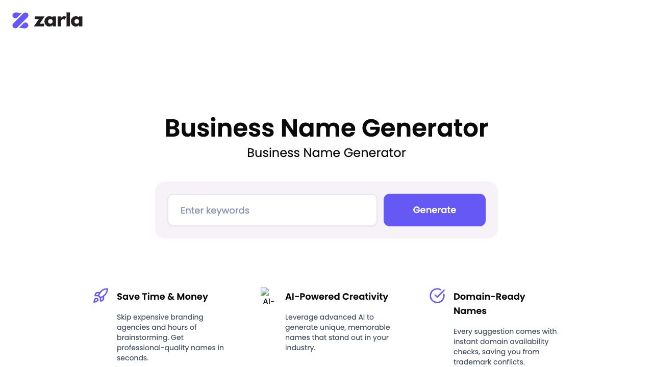 - AI Business Name Generator functionalityAI Business Name Generator