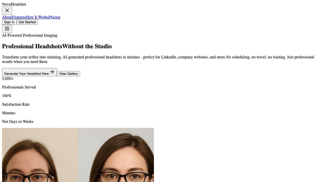 Nova Headshot is an AI Headshot Generator that transforms your online presence with stunning, AI-generated headshots perfect for LinkedIn, company websites, and more. It offers professional quality headshots in minutes, saving time and money compared to traditional photo sessions. Users can generate multiple styles and looks with ease, without needing to schedule or travel for a photo shoot. The AI ensures you always look your best.