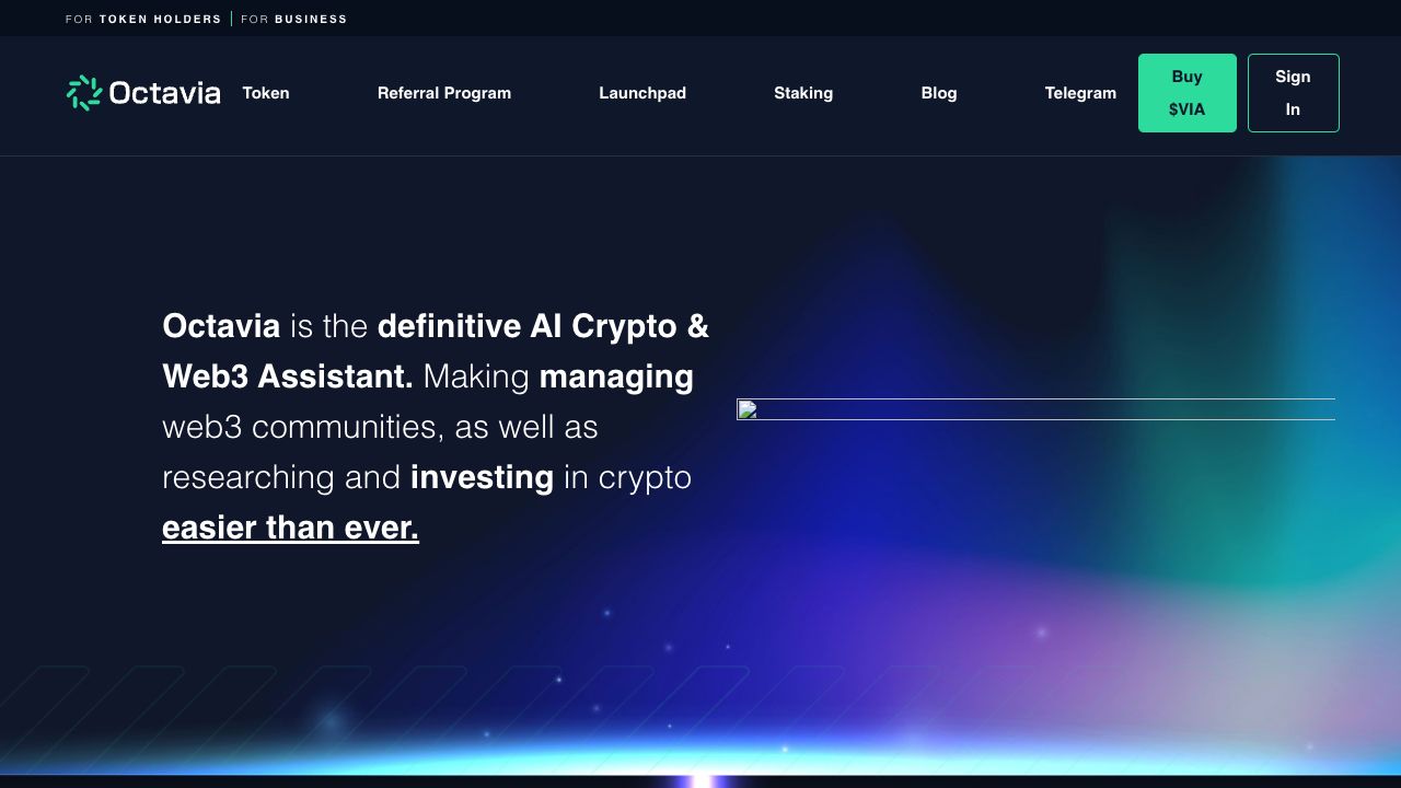 Users can interact with Octavia via Telegram, Discord, Twitter, or the Octavia App. Holding $VIA tokens is required to access the assistant's features. For business use, Octavia can be integrated to moderate and manage Web3 communities.