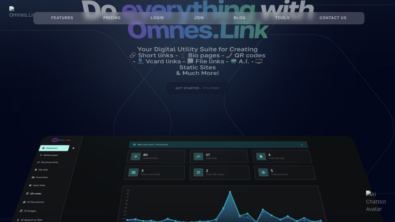 Use Omnes.Link to create short links, bio pages, and QR codes. Utilize AI tools for writing and image generation. Track user activity and customize your online presence.