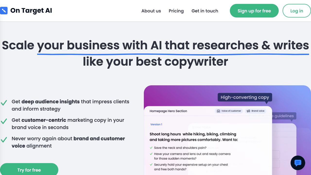 On Target AI helps users generate high-converting copywriting by analyzing customer language data to uncover the words and phrases that resonate most with their target audience. It allows users to upload customer reviews, survey answers, interview transcripts, and customer support chats to generate a Voice of Customer Report. This report then informs the creation of effective ad copy, emails, and landing pages.