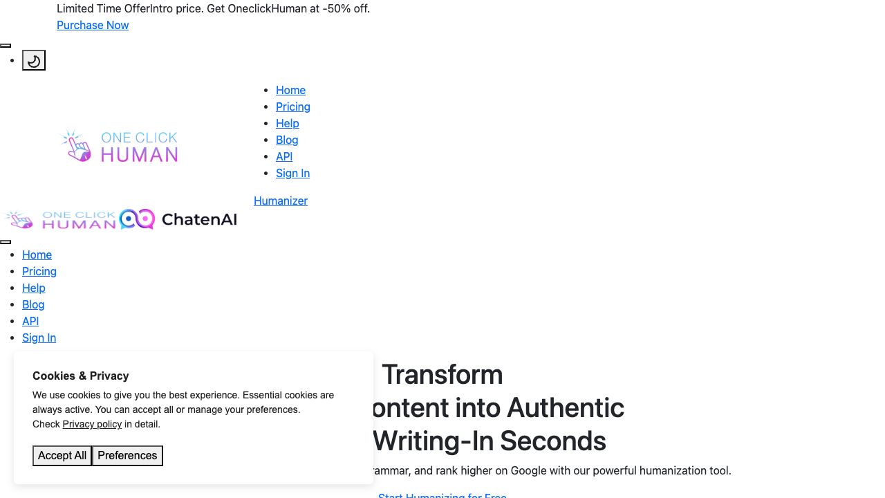 OneClickHuman is a tool designed to humanize content generated by AI tools, making it more readable, better structured, and free of grammatical errors. It converts AI content to make it undetectable by AI detectors, maintains original formatting, and supports multiple languages.