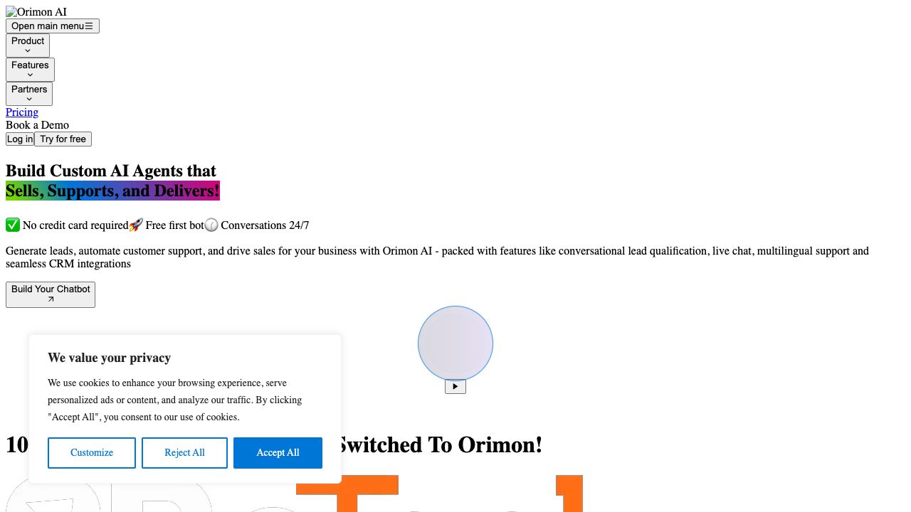 Orimon.ai is a conversational AI chatbot builder that helps businesses create customized sales assistants. It uses a ChatGPT-esque AI to boost conversions with lower costs and communicate in over 150 languages. It can be deployed on websites, WordPress, Instagram, FB, and other platforms.