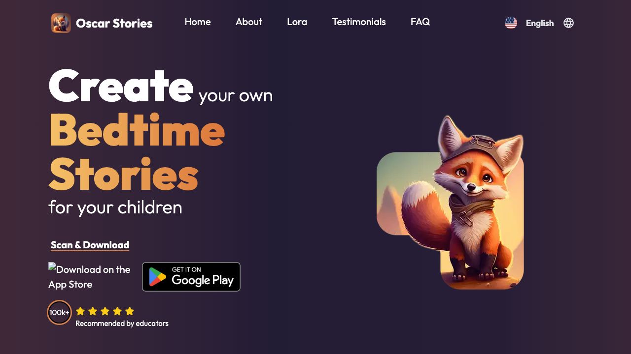 Oscar allows parents to generate personalized bedtime stories for kids with the help of artificial intelligence. The app utilizes cutting-edge AI technology to create unique and engaging stories that are tailored to the user's preferences. With Oscar, you can experience the thrill of reading a new story every night without having to spend hours searching for the perfect one. Oscar generates stories that are not only entertaining but also embedded with important life lessons. The app offers a wide range of stories that cover various topics such as honesty, kindness, courage, empathy, and responsibility, among others. With Oscar, children can learn important morals in a fun and exciting way.