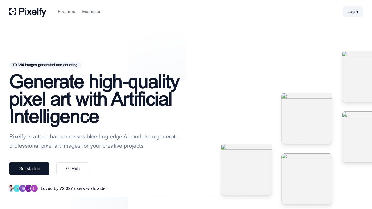Pixelfy is an open-source AI-powered tool that generates pixel art images. It includes an AI-powered prompt builder to simplify image generation. Users can start for free with 12 image generations.