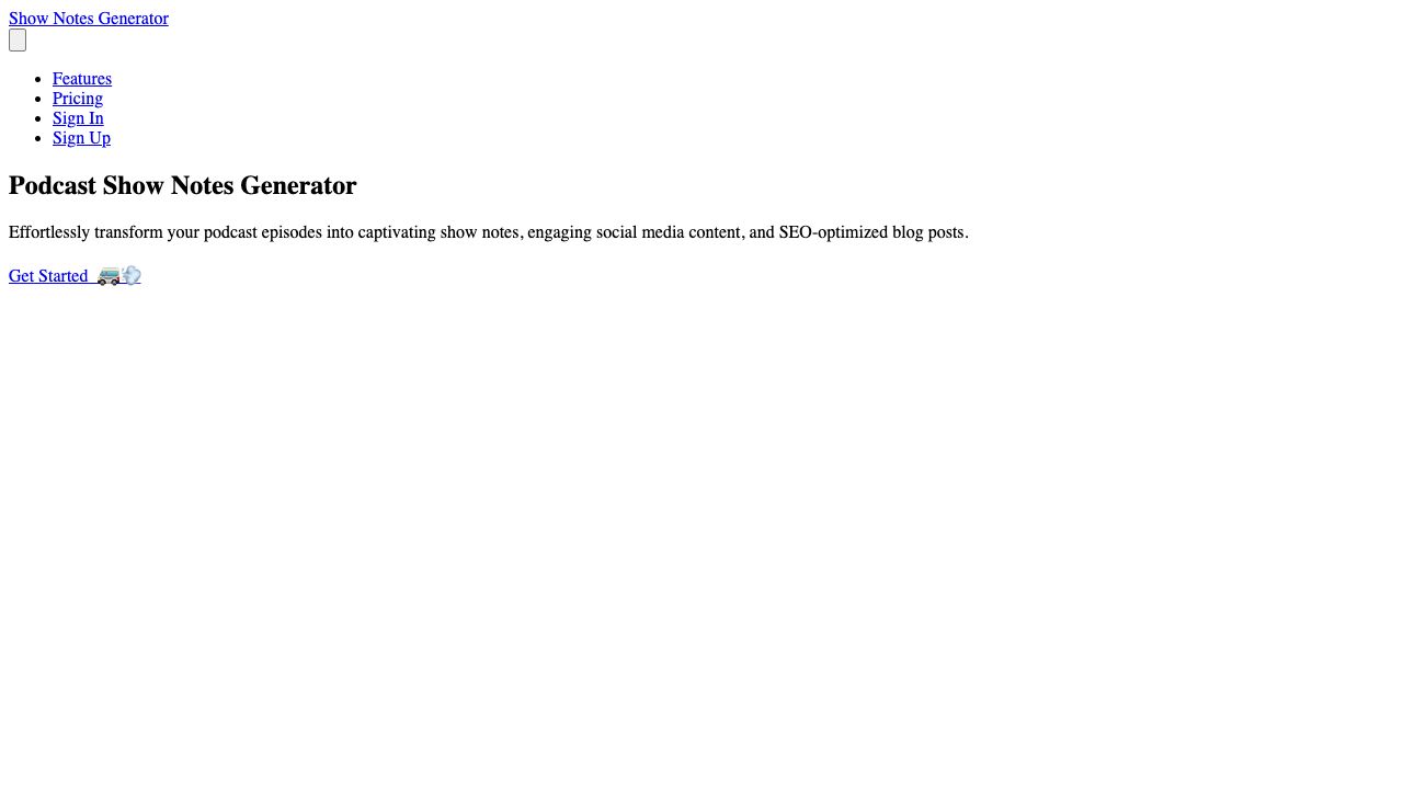 Podcast Show Notes Generator is a tool designed to effortlessly transform podcast episodes into captivating show notes, engaging social media content, and SEO-optimized blog posts. It helps podcasters spend less time on administrative tasks and more time on creating content. The generator converts audio files into professional, well-structured show notes, social media posts, email newsletters, and blog posts.
