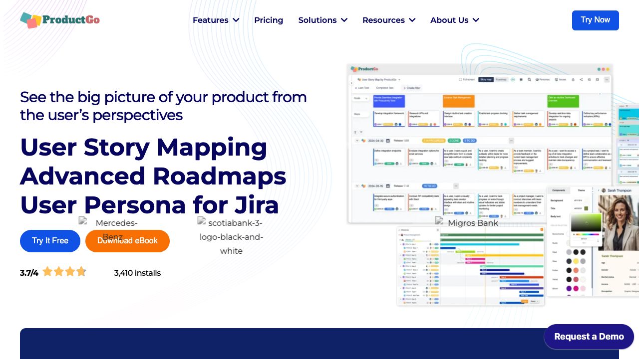 ProductGo integrates with Jira and Confluence, allowing users to access its features directly within these platforms. Users can create user story maps, roadmaps, and personas to visualize project requirements, track progress, and manage stakeholder engagement. The app offers intuitive drag-and-drop features and customizable workspaces.