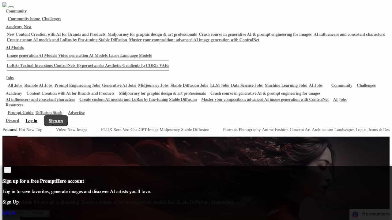 PromptHero is the #1 website for Artificial Intelligence and Prompt Engineering. It allows users to search millions of AI art images generated by models like Stable Diffusion, ChatGPT, and Midjourney. The platform also provides resources for learning prompt engineering, finding AI jobs, and engaging with a community of AI enthusiasts.