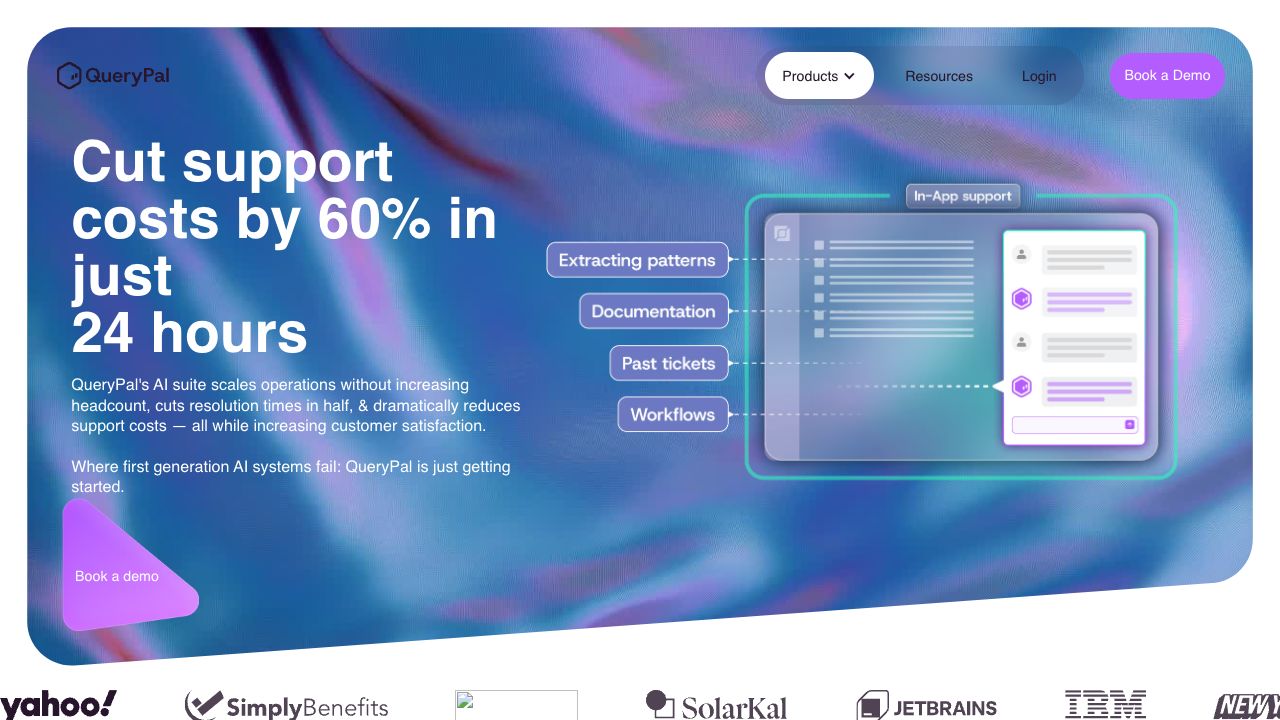 QueryPal is an AI chat assistant for Slack and Teams that automates support ticket deflection by answering questions using company data from Google Drive, Notion, Jira, Confluence, and more. It also generates automated reports and enhances communication.