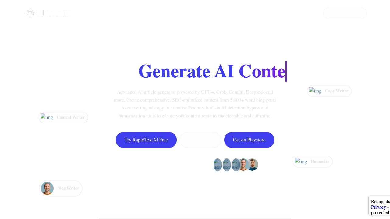 RapidTextAI is an advanced AI article generator, content, and image generation tool powered by multiple AI models such as GPT-4, Grok, Gemini, and Deepseek. It helps marketers, bloggers, and content creators generate comprehensive, SEO-optimized content from 3,000+ word blog posts to converting ad copy in minutes. It features built-in AI detection bypass and humanization tools to ensure content remains undetectable and authentic.
