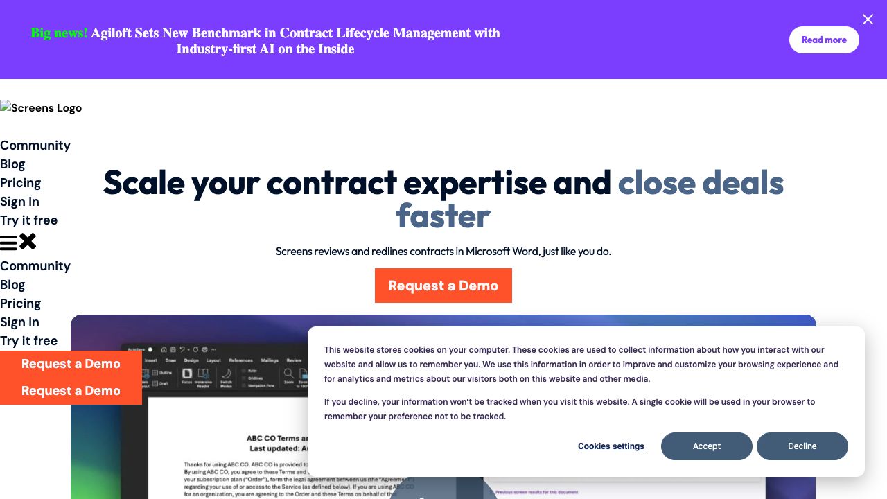 Screens AI is an AI-powered contract review platform that helps users scale their contract expertise and close deals faster. It offers features like AI-powered contract review, redlining in Microsoft Word, customizable playbooks, and bulk contract analysis. It is trusted by top legal departments.