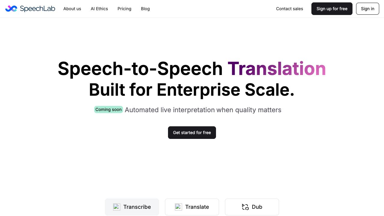 SpeechLab is a service that allows users to upload audio or video files and generates an editable transcript, translation, and dub using the same voices as the original speakers. Users can download captions, subtitles, and dubbed audio and video with or without the original background audio. It empowers publishers and creators to expand their reach globally through AI-based speech technology that generates customized dubbing and voice-overs in multiple languages and dialects.