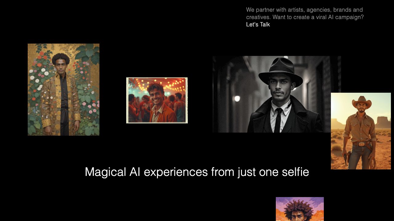 Upload a single selfie to the StyleOf platform and let their AI pipeline remix your likeness into various visual experiences. You can then share these experiences.