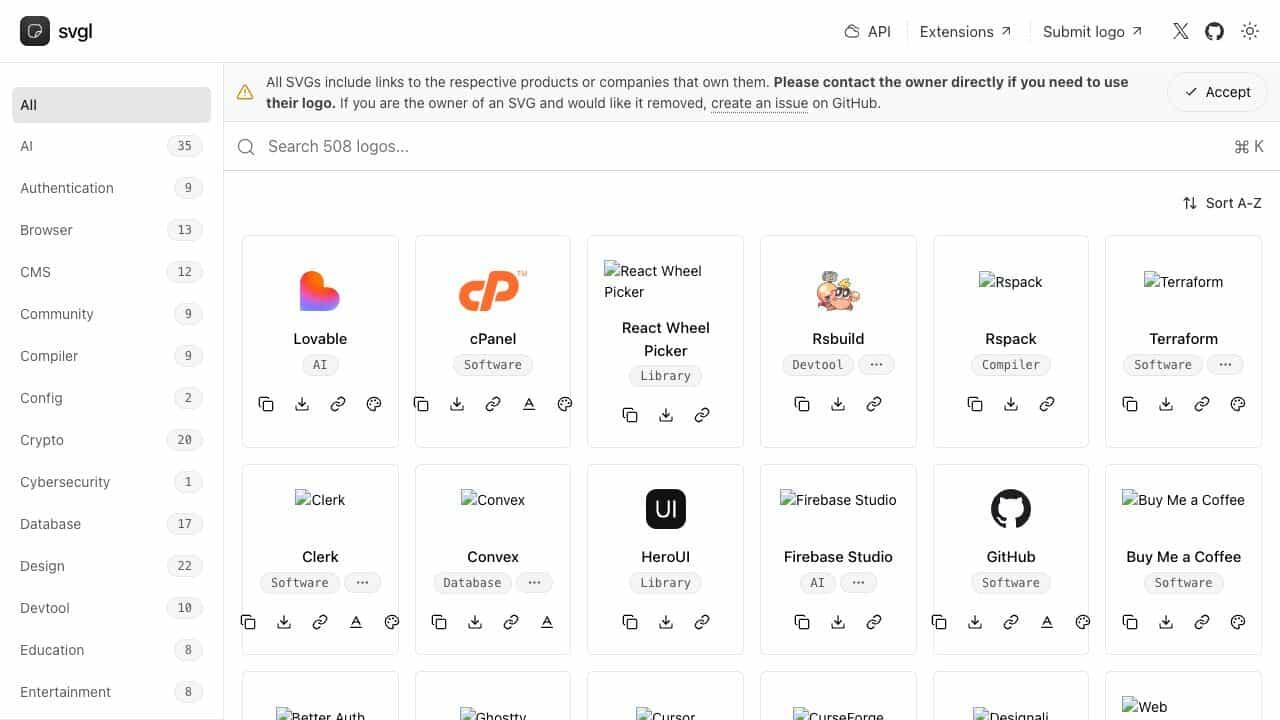 svgl is a collection of SVG logos from various brands and tools, providing a resource for design and development projects.