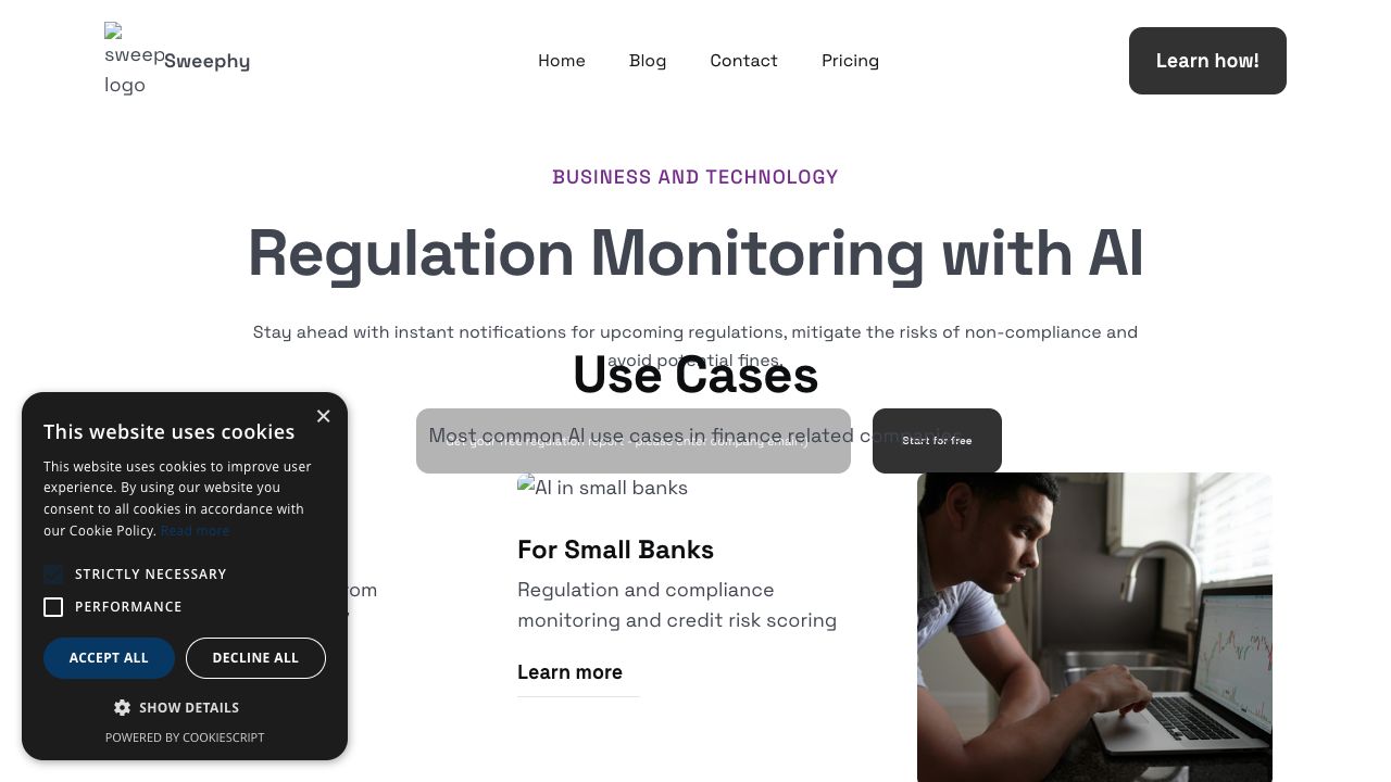 Sweephy is a SaaS platform that enables the creation of value from data using the latest open-source machine learning, and natural language processing models without the need for code knowledge. It also plays a role in cleaning and organizing data. Sweephy helps stay ahead with instant notifications for upcoming regulations, mitigate the risks of non-compliance and avoid potential fines. It offers regulation monitoring from regulatory portals for 27 EU countries, small banks, and stock traders.