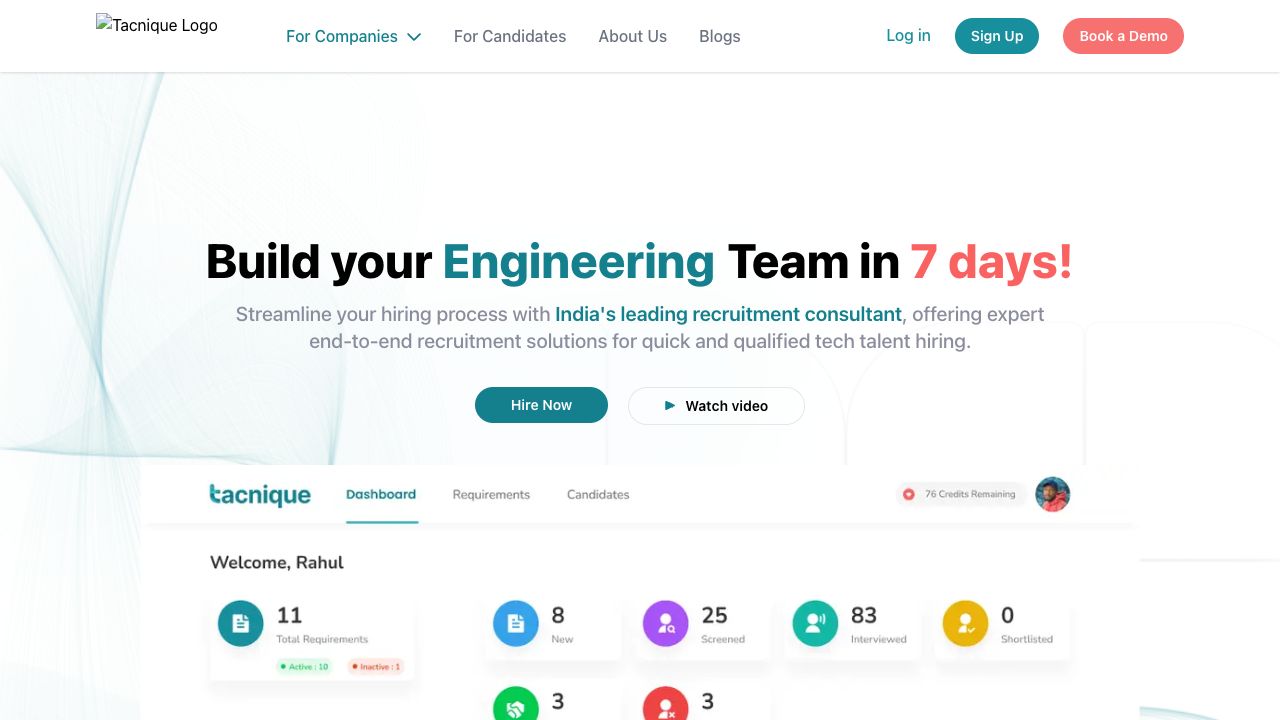 Companies can use Tacnique to outsource tech interviews, access a pre-evaluated talent pool, and streamline their hiring process. Engineers can use the platform to find job openings and showcase their skills.