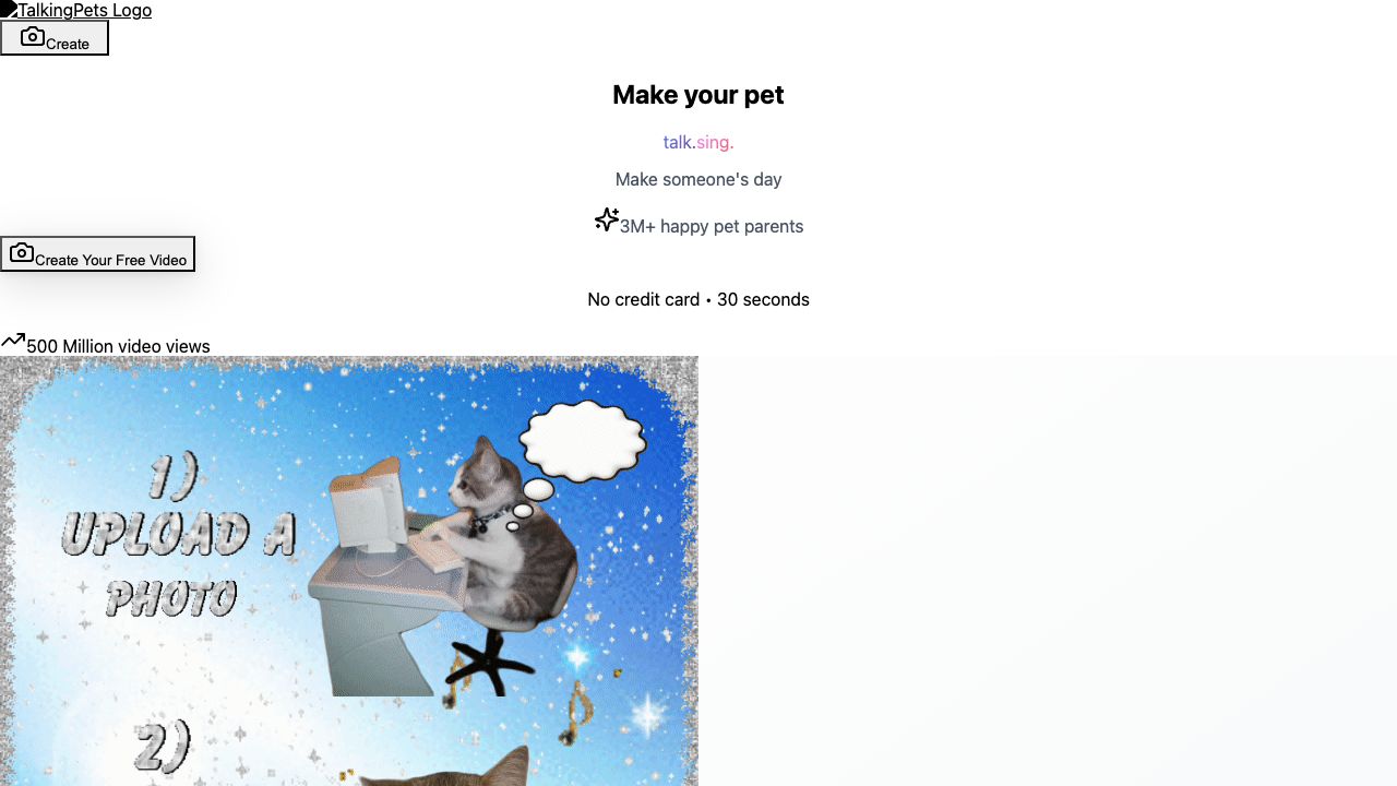 TalkingPets.ai is an AI-powered platform that allows users to create hilarious singing and talking pet videos. It offers tools to make pets appear to talk and sing, suitable for creating funny content for social media, marketing, or personal enjoyment. The platform is designed to be user-friendly, requiring no technical skills and enabling the creation of videos in just 30 seconds.