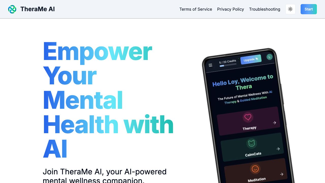Join TheraMe AI and start a conversation. The AI provides immediate support and guidance. If you're having trouble signing in or signing up, visit the Troubleshooting Page.