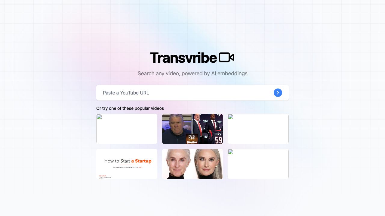 Transvribe is designed to make learning on YouTube 10x more productive. It uses AI embeddings to enable users to search any video, and also allows users to paste a YouTube URL to ask their first question.