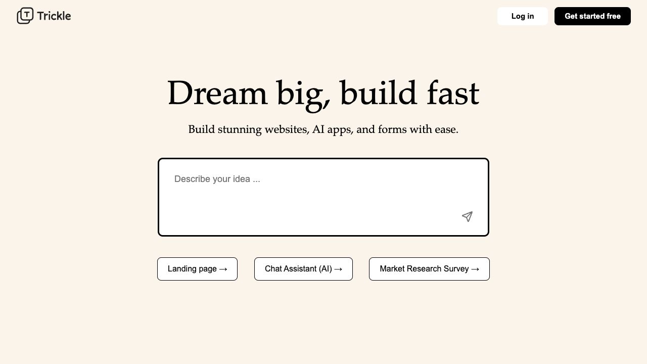 Trickle revolutionizes team collaboration and communication by integrating AI power. It empowers users to build, launch, and manage AI agents, web apps, and forms with built-in database, AI models, analytics, and designs. Trickle turns ideas into ready-to-use apps from concept to reality, offering an all-in-one solution for smarter website creation with built-in AI capabilities.