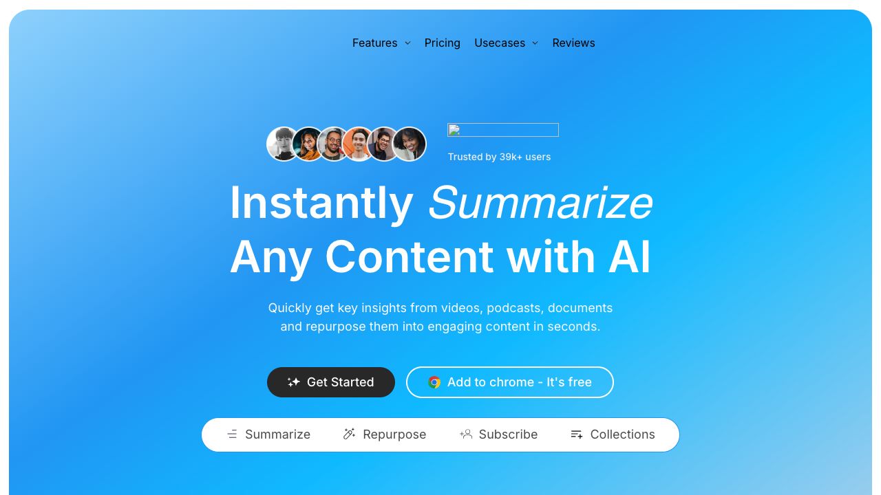 - Summarize YouTube videos, podcasts, Google Drive files, and articles