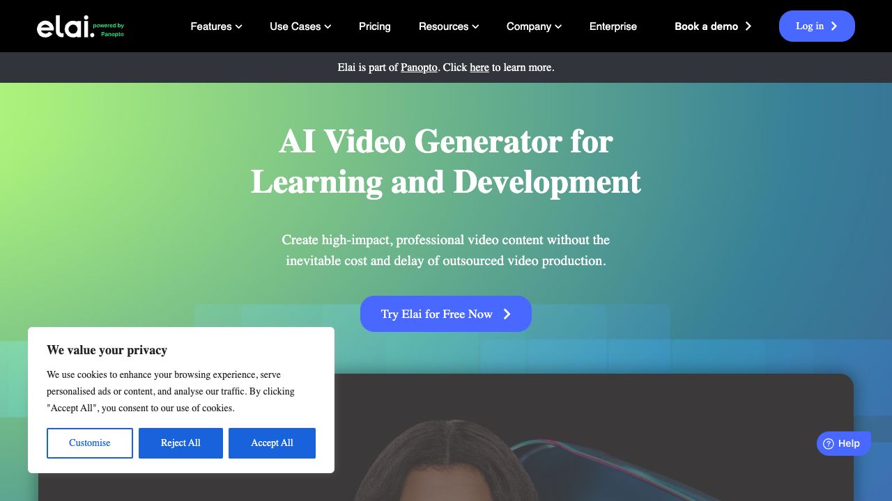 Experience one of the most powerful AI Training Video Generators on the market: Elai, Powered by Panopto. Start creating for free now!