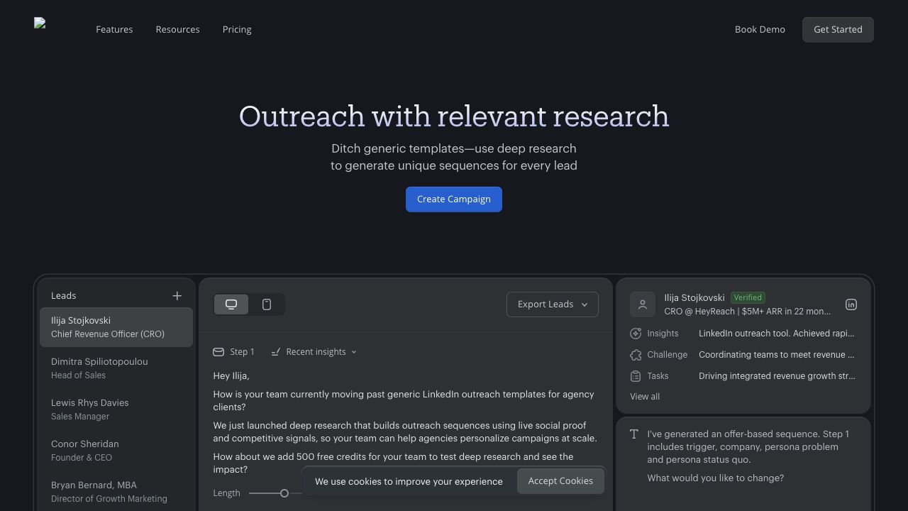 - Generating 1:1 personalized sequences for multi-channel outbound campaigns